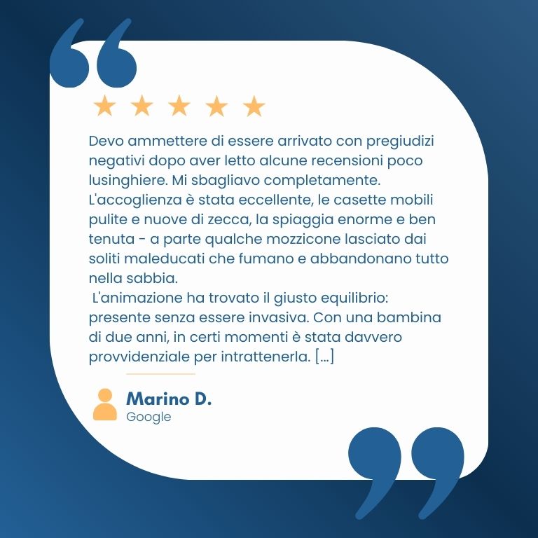 Per la stagione 2026 il villaggio sarà aperto dal 21 maggio al 21 settembre 2026. Un periodo perfetto per vivere il mare in famiglia, dalla primavera fino alla fine dell’estate.