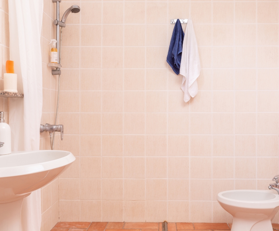 Bathroom complete with shower and bidet, functional and easily accessible from the living area.